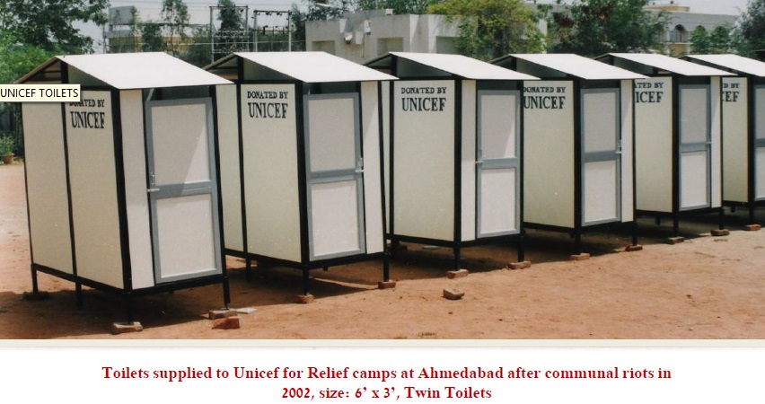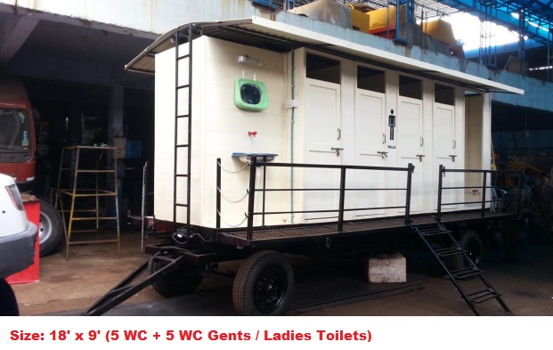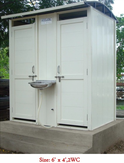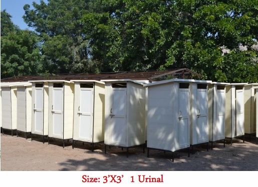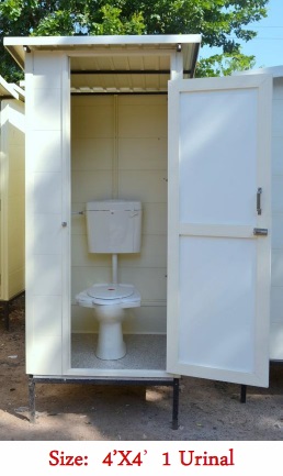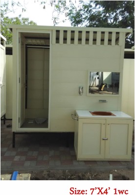 Twin unit (2 wc/1wc + 1 Urinal), (1wc + 1 Bath Gents/Ladies)- 6’x3’, 6’x 4’, 1100mm x 2200mm