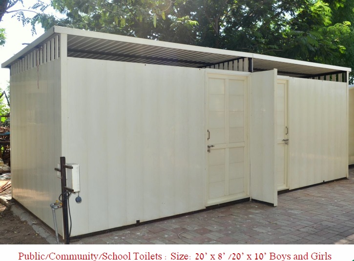 School/Public/Community Toilets :(1 wc+2 urinal,Boys/Girls) 7’x4’ (1wc+4 Urinal,Boys/Girls ) - 11’ x 4’